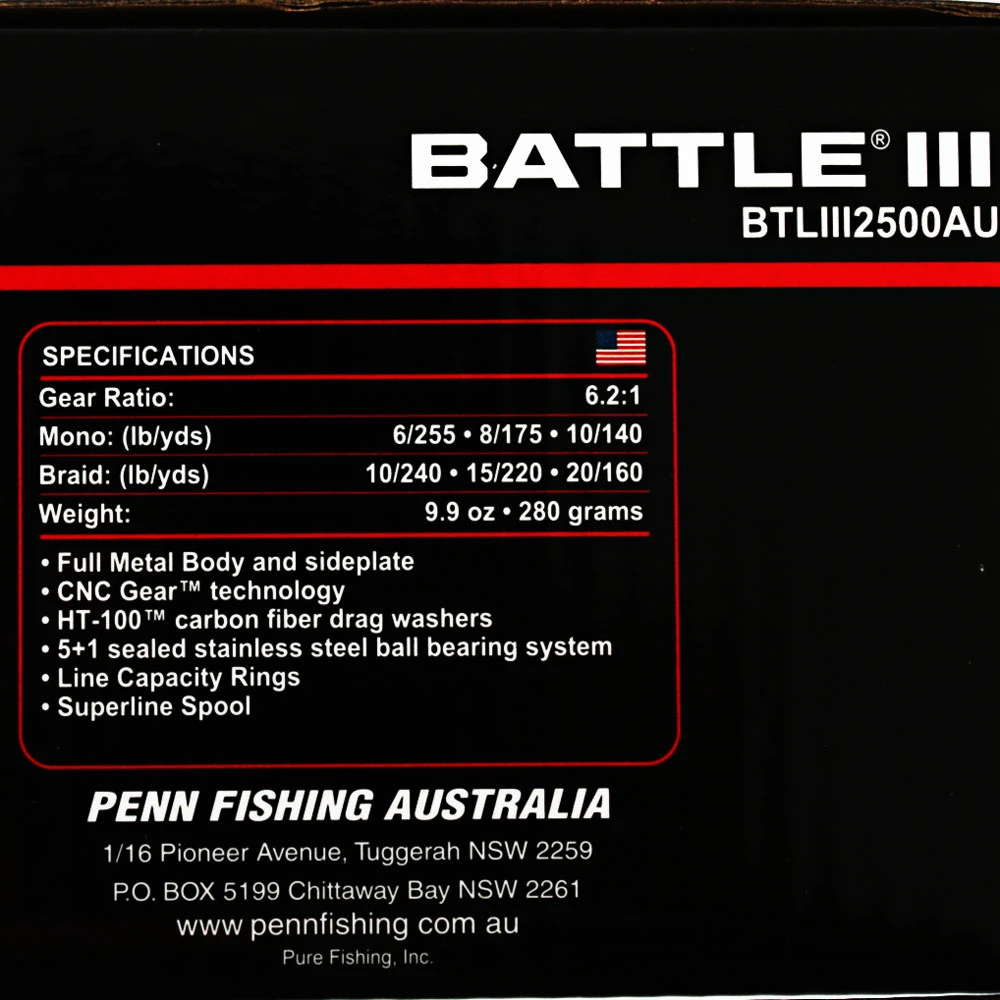 PENN Battle III 2500 Spinning Reel Specifications: