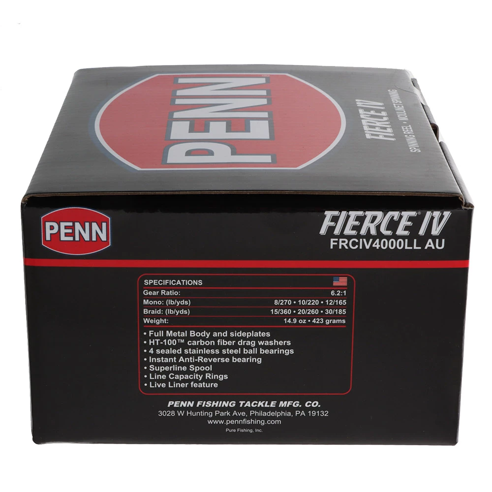 The new PENN Fierce IV 4000LL Live Liner Spinning Reel is one of the best value saltwater spinning reels in PENN’s portfolio. Featuring high strength full metal body and graphite rotor, 4 sealed stainless steel ball bearings, instant anti reverse bearing and PENN’s proven HT-100 drag, the Fierce IV can stand up to anything you hook.